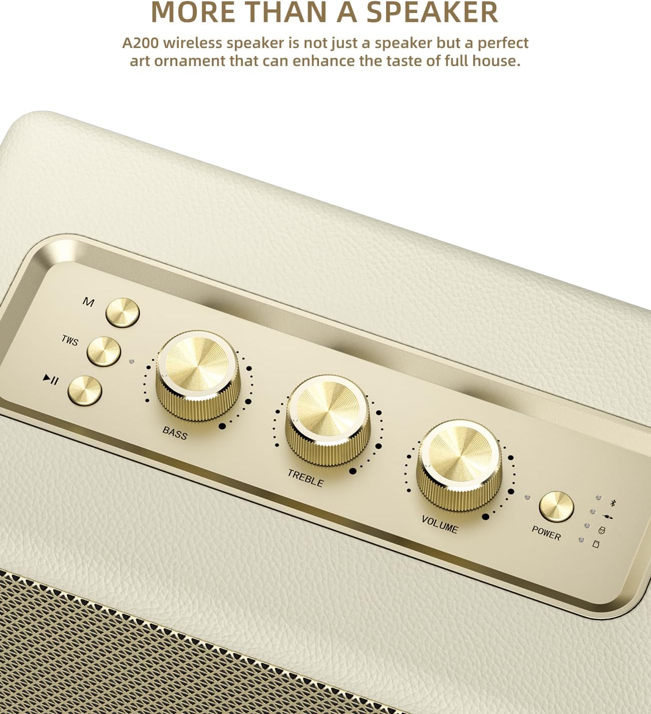 このスピーカーは、クラシックなビンテージ デザインと最新の機能を兼ね備えています。使いやすい高音と音量コントロール ノブを備えており、サウンドを完璧に微調整できます。80W の強力な出力で、豊かでダイナミックなサウンドが家中に広がります。ワイヤレス スピーカーは USB-C 充電式バッテリーで動作し、1 回の充電で最大 10 時間の連続再生が可能です。パーティーを主催するときも、自宅でくつろぐときも、A200 ワイヤレス スピーカーは忘れられないリスニング体験を提供します。