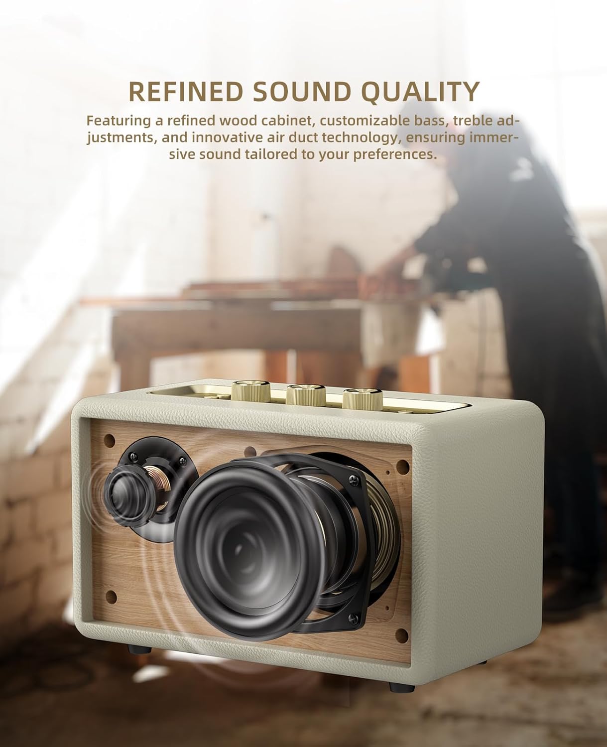 これらのレトロスタイルのワイヤレス スピーカーには、シームレスな接続を実現する Bluetooth 5.3、3.5mm 補助入力、マイクロ SD カード スロット、USB フラッシュ ドライブ サポート (最大 32GB)、再生モードを変更するボタン 1 つが搭載されています。パワー バンク機能と TWS (True Wireless Stereo) をサポートし、2 つのスピーカーを簡単にペアリングして、臨場感あふれるサラウンド サウンドを体験できます。自宅、裏庭での集まり、パーティーに最適です。